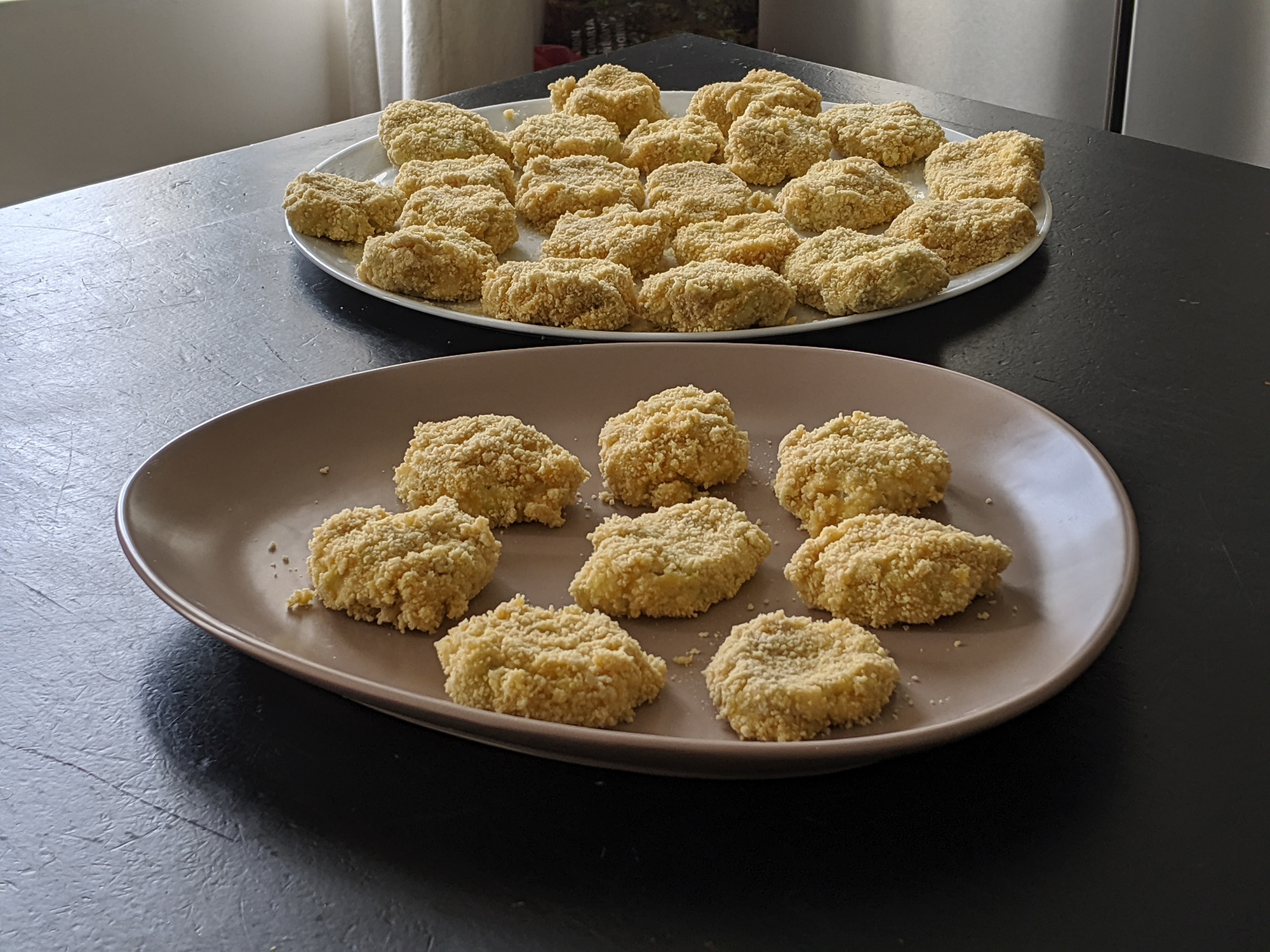 À l’aide de cuillères à soupe, former des quenelles avec votre préparation. Les passer une par une dans les trois ingrédients à panure en respectant bien l’ordre. Astuce pour faciliter cette étape : réserver deux cuillères par saladier pour ne pas mélanger les ingrédients en passant de l’un à l’autre.